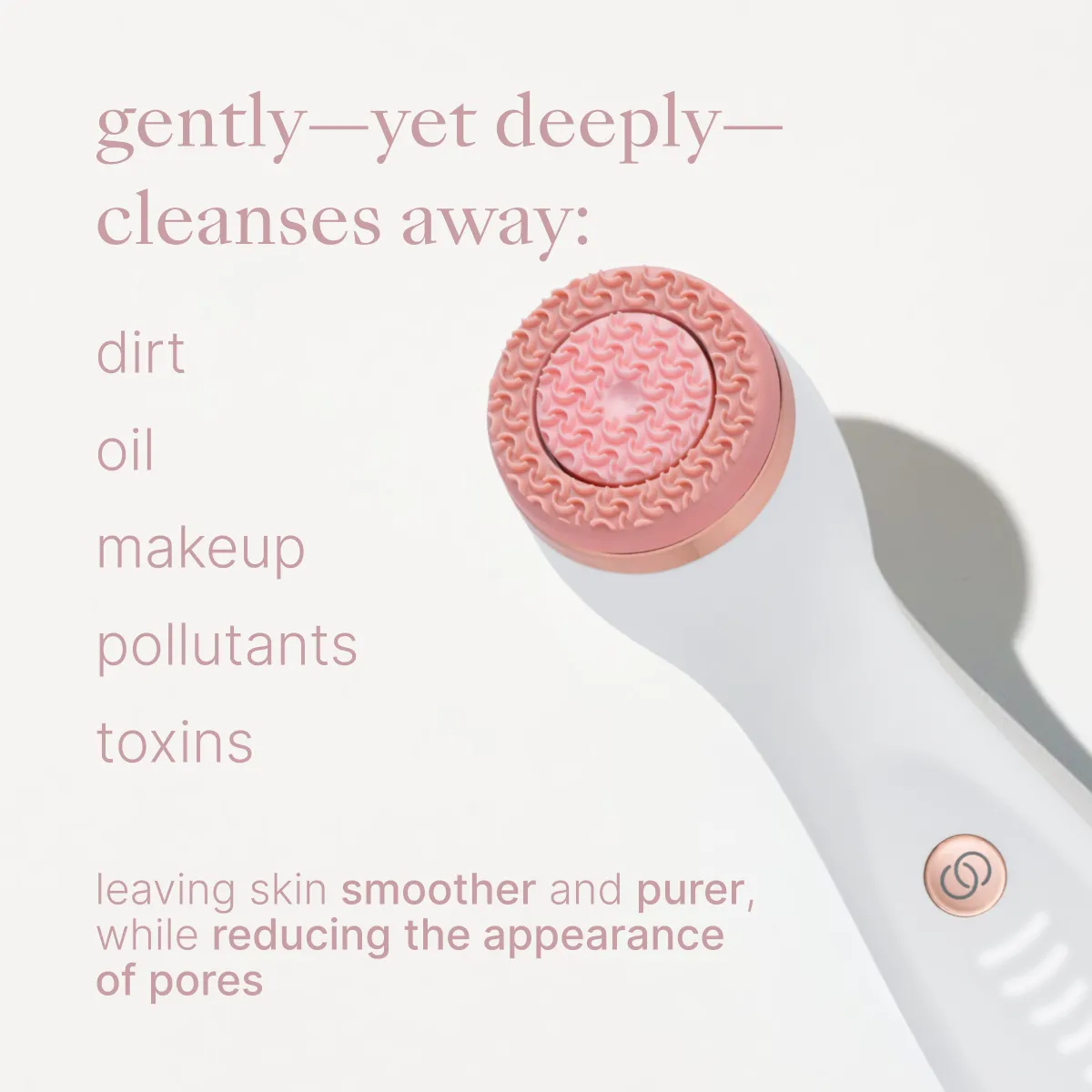 ageLOC LumiSpa iO's soft, anti-microbial head has outer and inner rings that move in opposite directions, gently pulling and massaging skin. This movement and its frequency leaves your skin smoother and purer, while reducing the appearance of pores, all without disrupting you skin's natural microbiome balance.