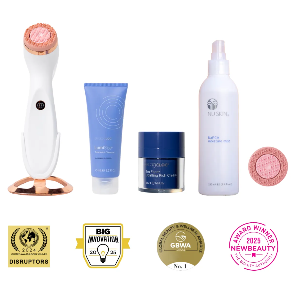 3. ageLOC LumiSpa iO is a dual-action, timesaving device that delivers a superior skin-perfecting treatment and deep cleansing benefits simultaneously.